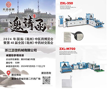 通知????安徽亳州中醫(yī)藥博覽會!我司將現(xiàn)場展示自動穿繩茶包袋!高速線縫煎藥袋兩款機(jī)型!誠邀新老客戶現(xiàn)場參觀洽談!